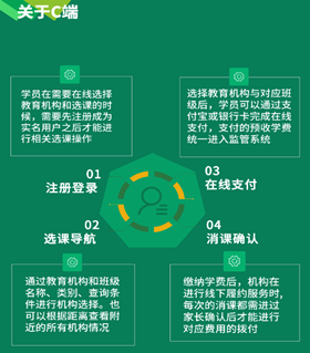 U培+:平臺(tái)是基于“民辦教育全場(chǎng)景綜合服務(wù)+資金監(jiān)管”的互聯(lián)網(wǎng)+模式,通過(guò)“行政管理+金融監(jiān)管”的結(jié)合,實(shí)現(xiàn)對(duì)民辦教育機(jī)構(gòu)的辦學(xué)審批、師資建設(shè)、教學(xué)質(zhì)量、服務(wù)質(zhì)量、誠(chéng)信監(jiān)督、學(xué)費(fèi)監(jiān)管、異動(dòng)預(yù)警等全生命周期管理。
